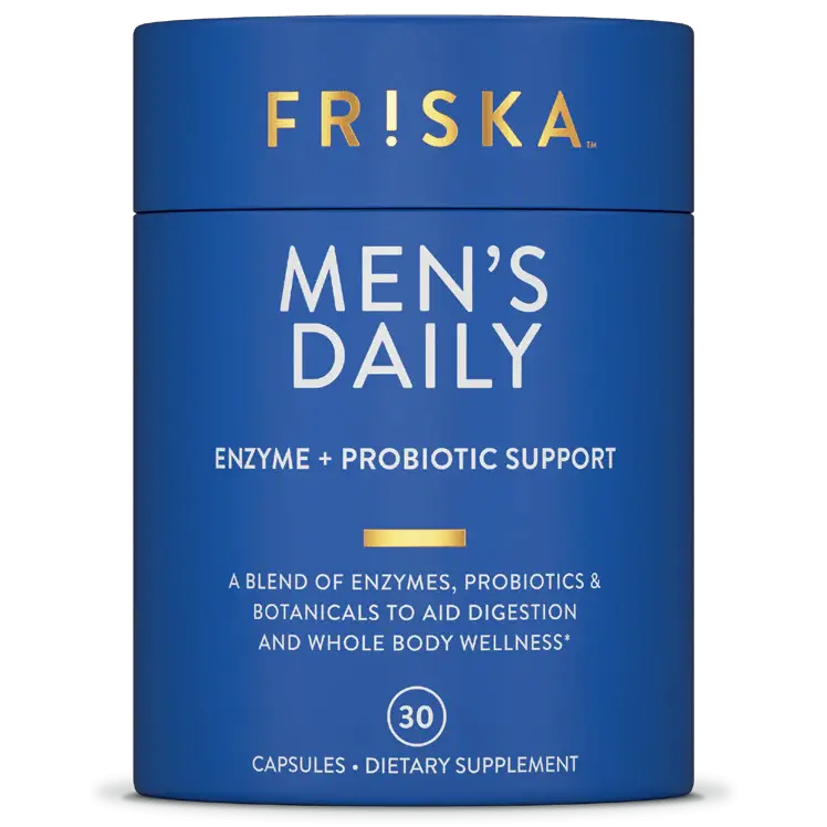 Conçu pour répondre aux besoins digestifs spécifiques des hommes, il aide à décomposer les aliments et favorise une absorption optimale des nutriments. FRISKA Men's Daily contient des probiotiques soutenus par la science, notamment la souche probiotique DE111® cliniquement prouvée et un mélange exclusif d'enzymes pour aider votre intestin à gérer les aliments irritants que vous avez du mal à digérer. Le mélange de suppléments unique de FRISKA aide à décomposer les aliments gênants et maintient votre intestin en équilibre. Vous obtenez également un regain d'énergie grâce aux bienfaits supplémentaires des vitamines B6 et B12. BINGO !*