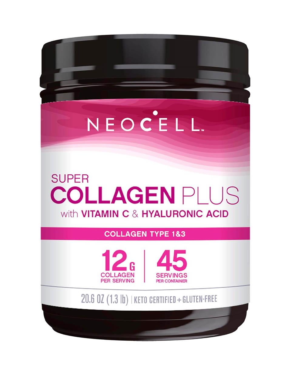 Le Super Collagène Plus avec vitamine C et acide hyaluronique de NeoCell est un moyen naturellement nutritionnel et technologiquement avancé de soutenir l'apparence du vieillissement cutané de l'intérieur vers l'extérieur.