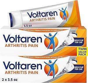 Deux tubes de 3,5 oz/100 g de gel antidouleur Voltaren pour un soulagement puissant de la douleur topique de l'arthrite - Bouchon à rabat facile à ouvrir avec la paume de la main, les doigts ou même d'une seule main ; l'emballage peut varier